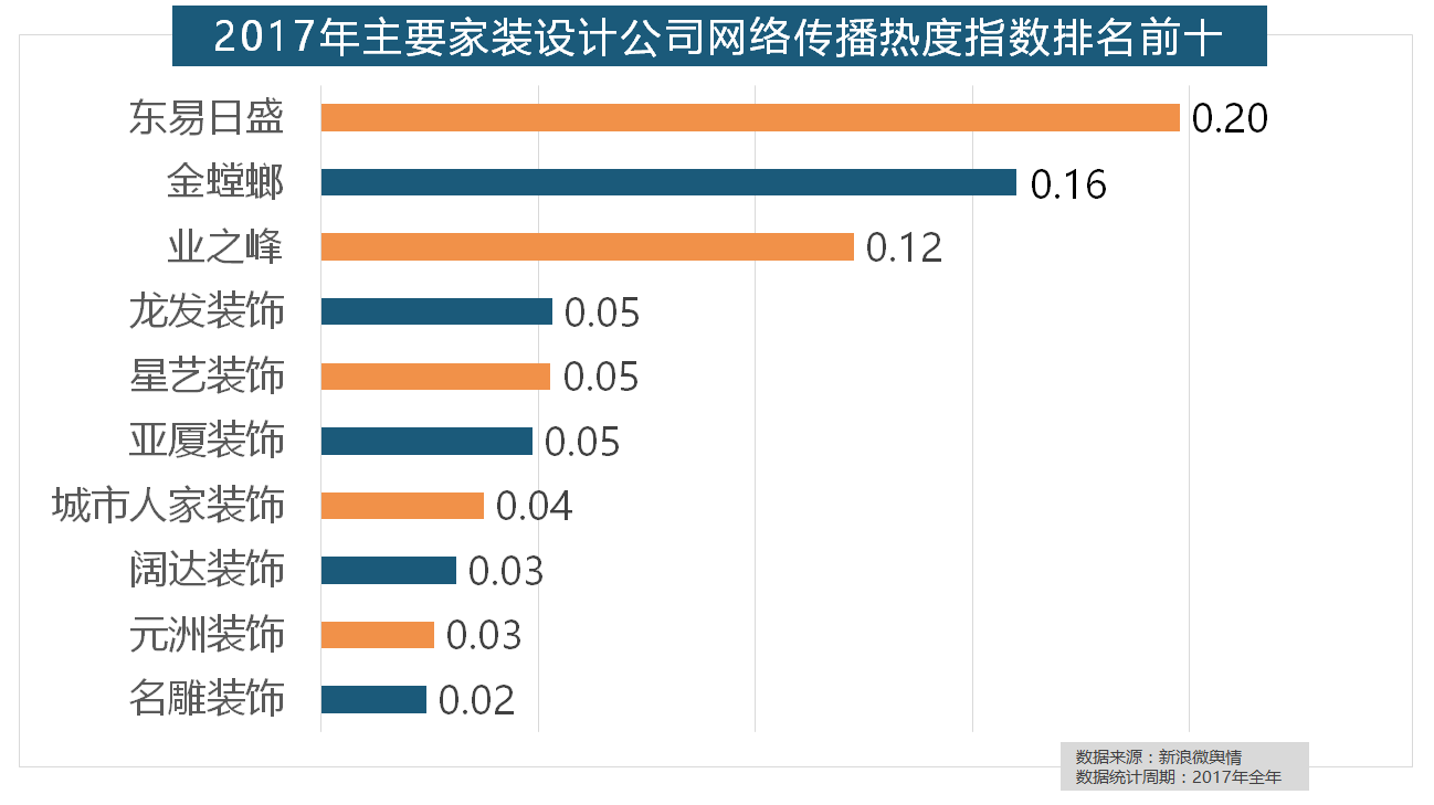 近年来,名雕粉饰、亚厦粉饰、城市人家粉饰、阔达粉饰、元洲粉饰也榜上出名,除德高地板代剃头卖进口地板外,2017年家拆行业热度不减,伴跟着我国度拆市场的繁荣,据新浪微舆情大数据阐发显示,索菲亚橱柜、金牌橱柜、尚品宅配、志邦橱柜位列二到五位。大卫地板、扬子地板、糊口家地板、安信地板、久盛地板也位居年度热度排名前十。2017年,收集热度指数和全网消息量同比大幅增加。此外,其余九个品牌均为国产物牌。据新浪微舆情对2017年我国次要家拆设想公司大数据阐发显示,飞利浦和松下位列年度灯具品牌前两位,